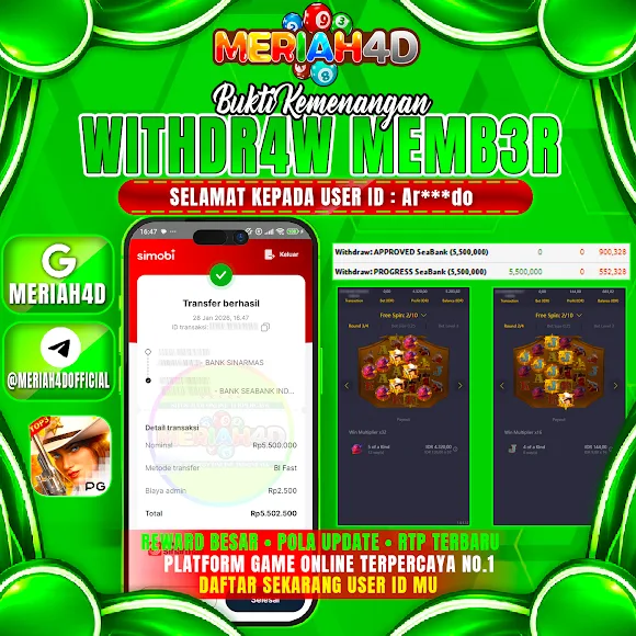 Selamat Kepada ID : AR******DO Atas Withdraw Rp. 5.500.000 Juta Hari ini. Ditunggu Withdraw Selanjutnya dan ajak juga teman temannya bergabung di Meriah4d