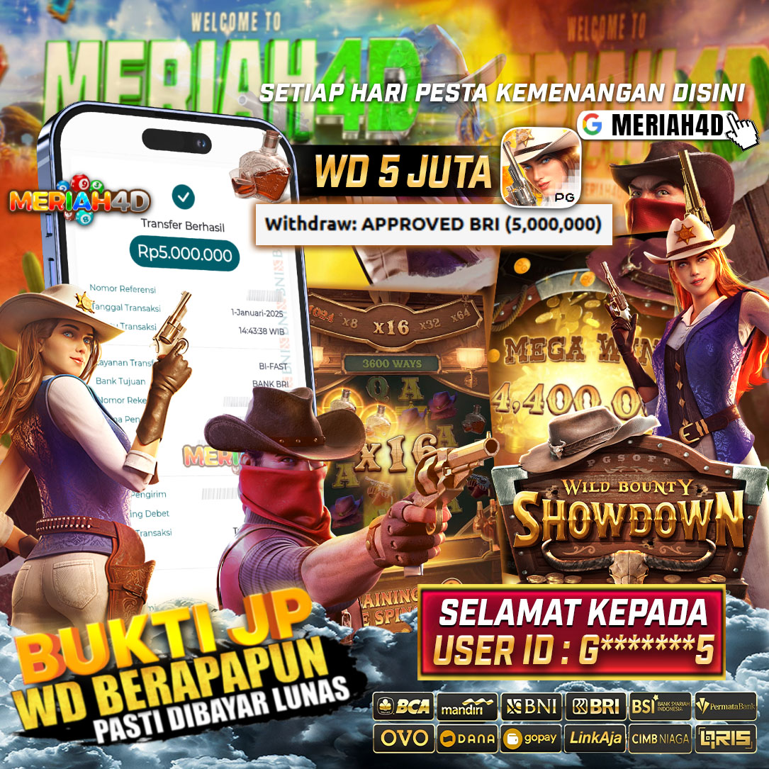 Selamat Kepada ID : G*****5 Atas Withdraw Rp. 5.000.000 Juta Hari ini. Ditunggu Withdraw Selanjutnya dan ajak juga teman temannya bergabung di Meriah4d