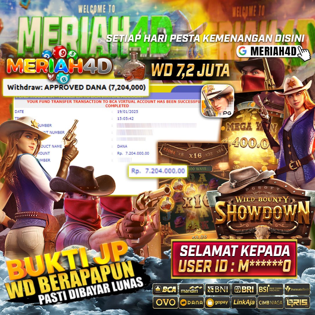Selamat Kepada ID : M******0 Atas Withdraw Rp. 7.200.000 Juta Hari ini. Ditunggu Withdraw Selanjutnya dan ajak juga teman temannya bergabung di Meriah4d