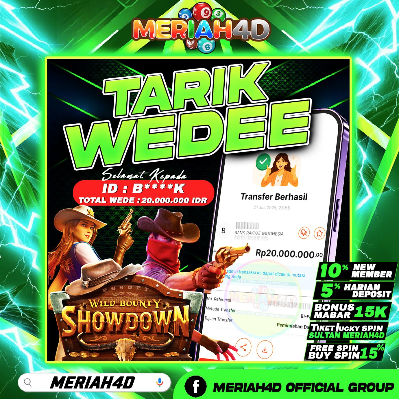 Selamat Kepada ID : B******K Atas Withdraw Rp. 20.000.000 Juta Hari ini. Ditunggu Withdraw Selanjutnya dan ajak juga teman temannya bergabung di Meriah4d