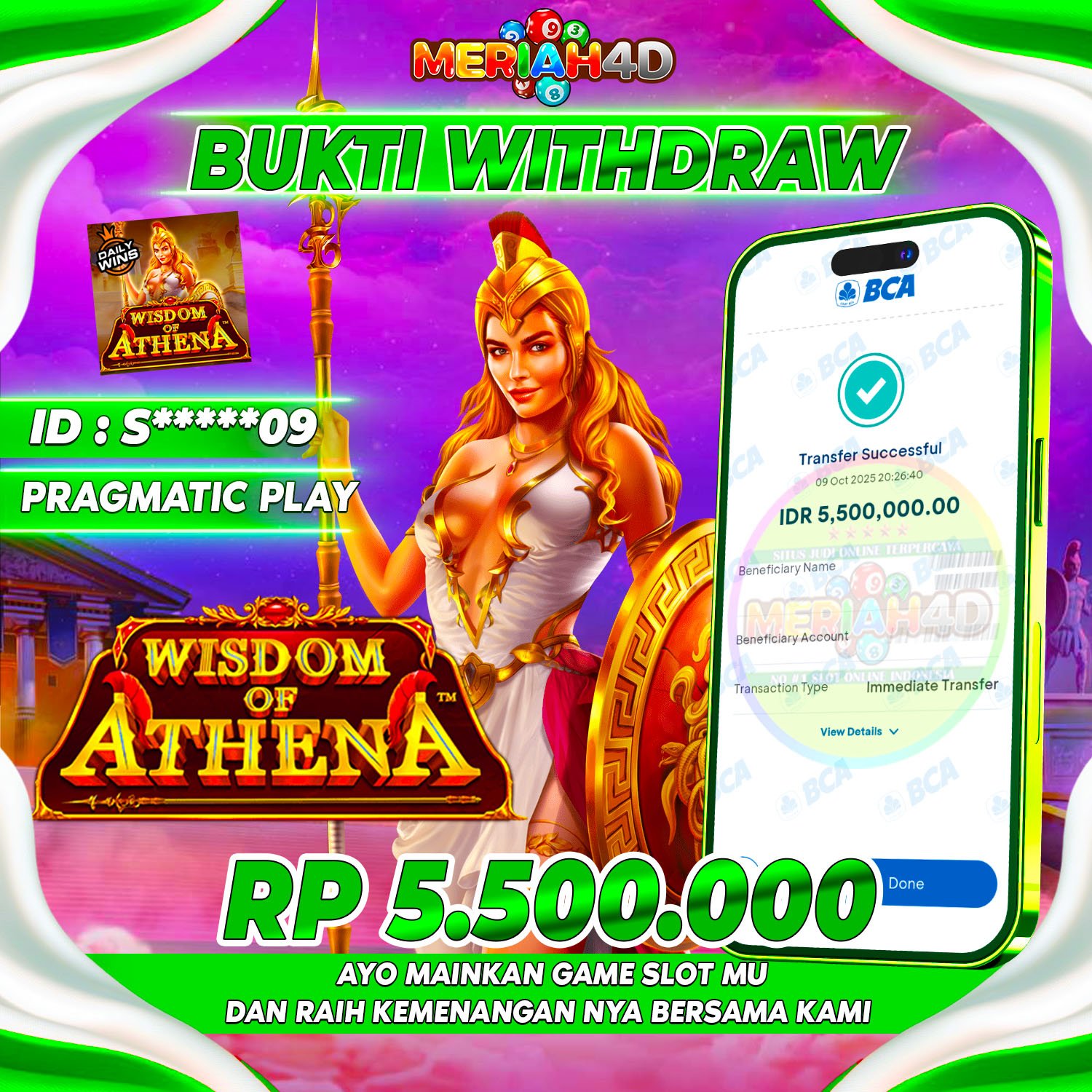 MERIAH4D Bukti Kemenangan SLOT WISDOM OF ATHENA