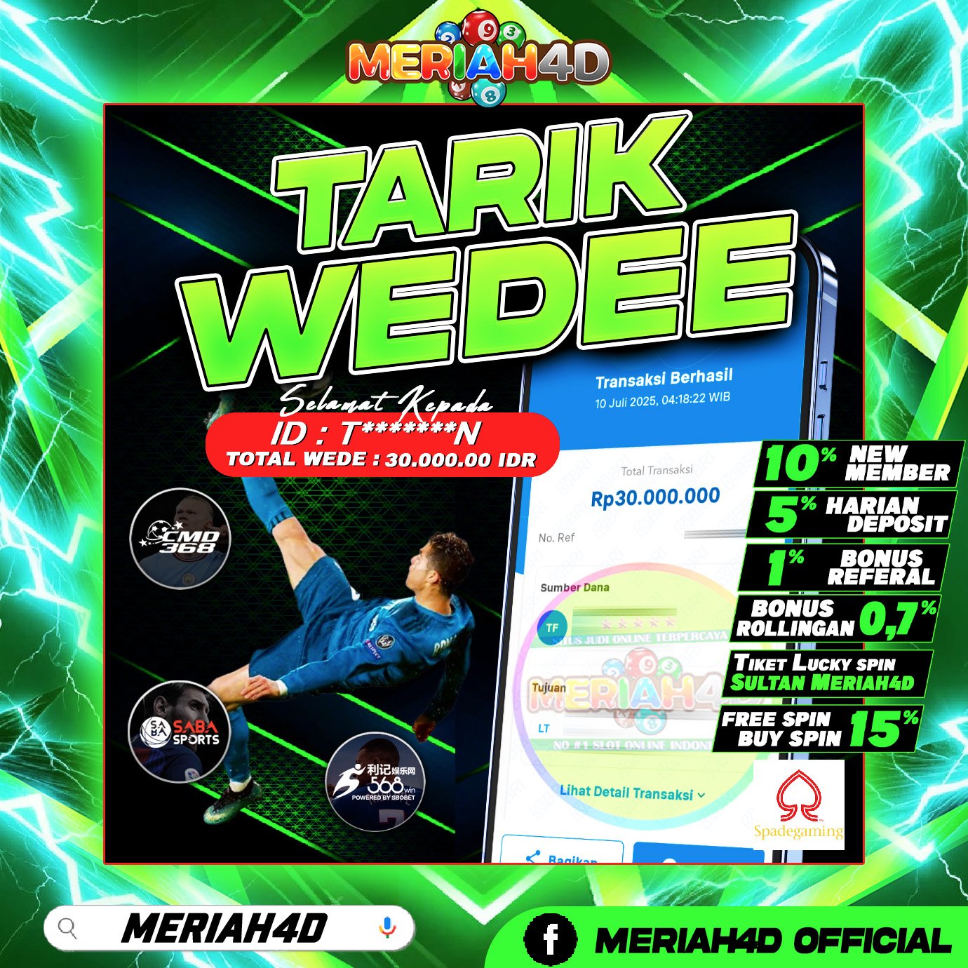 Selamat Kepada ID : T*******N Atas Withdraw Rp. 30.000.000 Juta Hari ini. Ditunggu Withdraw Selanjutnya dan ajak juga teman temannya bergabung di Meriah4d