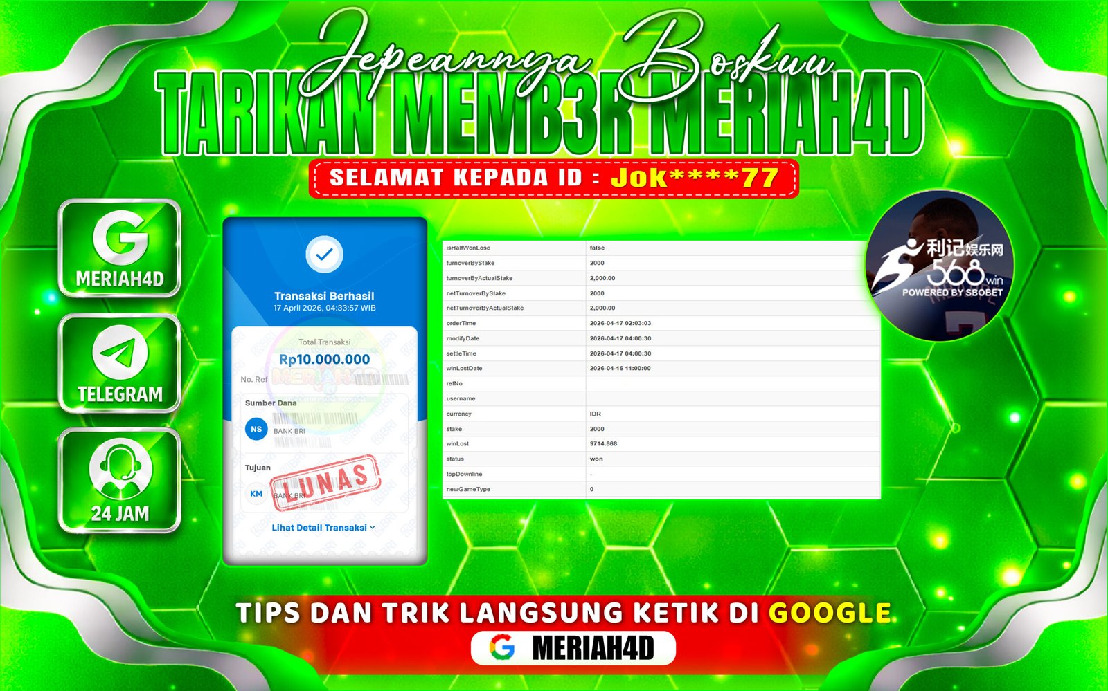 Selamat Kepada ID : Jok****** 77Atas Withdraw Rp. 10.000.000 Juta Hari ini. Ditunggu Withdraw Selanjutnya dan ajak juga teman temannya bergabung di Meriah4d