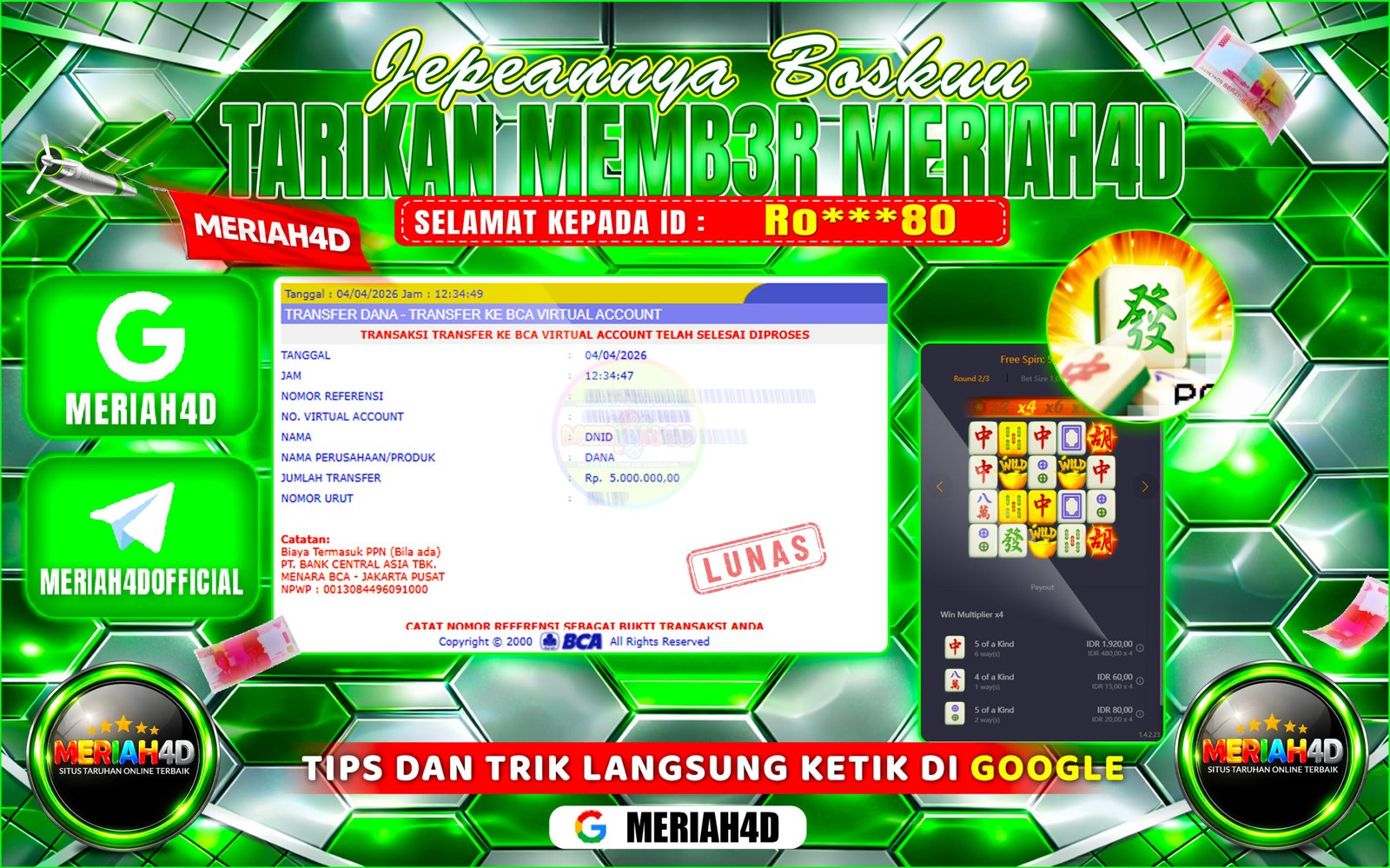 Selamat Kepada ID : R******N Atas Withdraw Rp. 6.000.000 Juta Hari ini. Ditunggu Withdraw Selanjutnya dan ajak juga teman temannya…