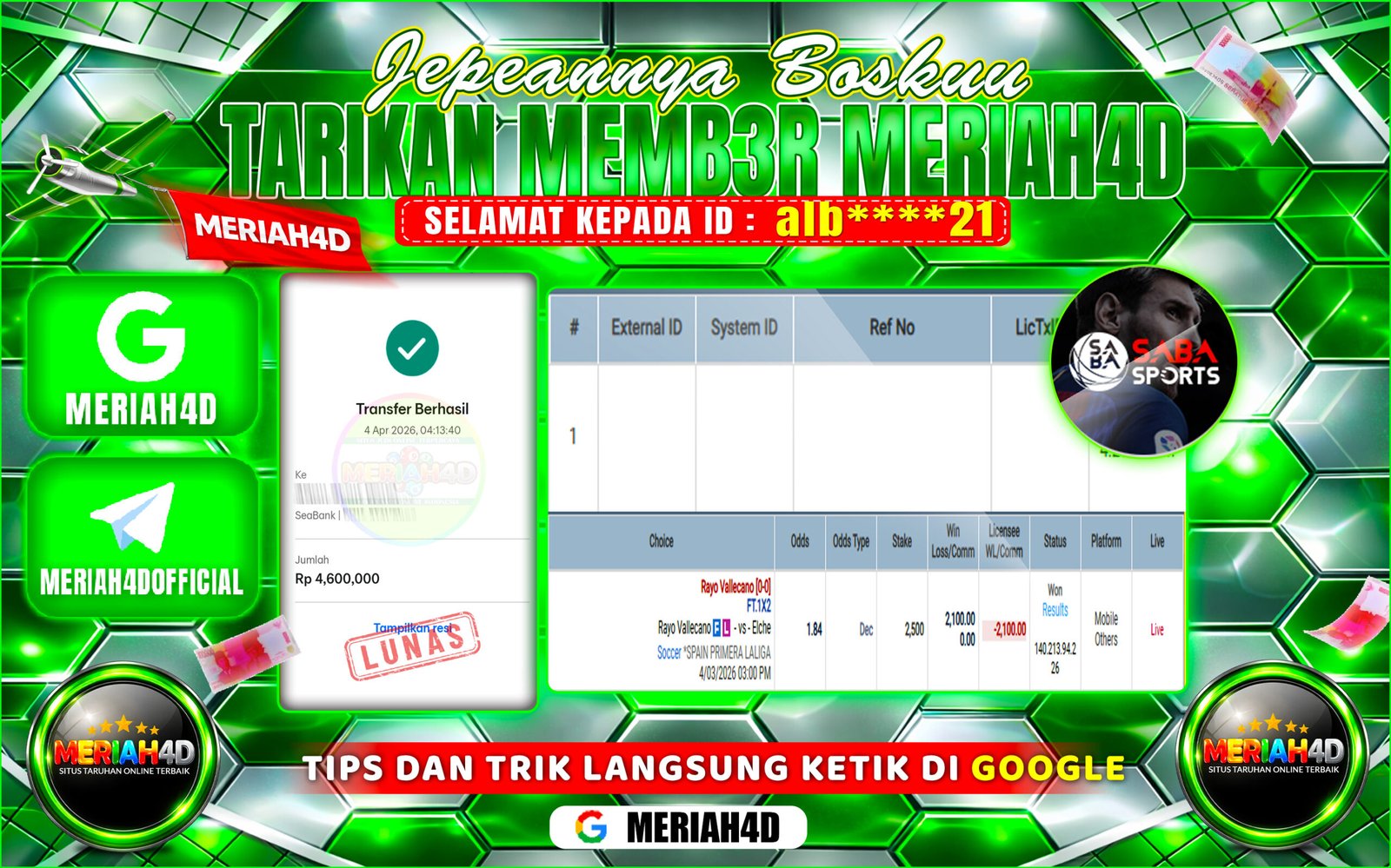 Selamat Kepada ID : DA******19 Atas Withdraw Rp. 38.000.000 Juta Hari ini. Ditunggu Withdraw Selanjutnya dan ajak juga teman temannya…