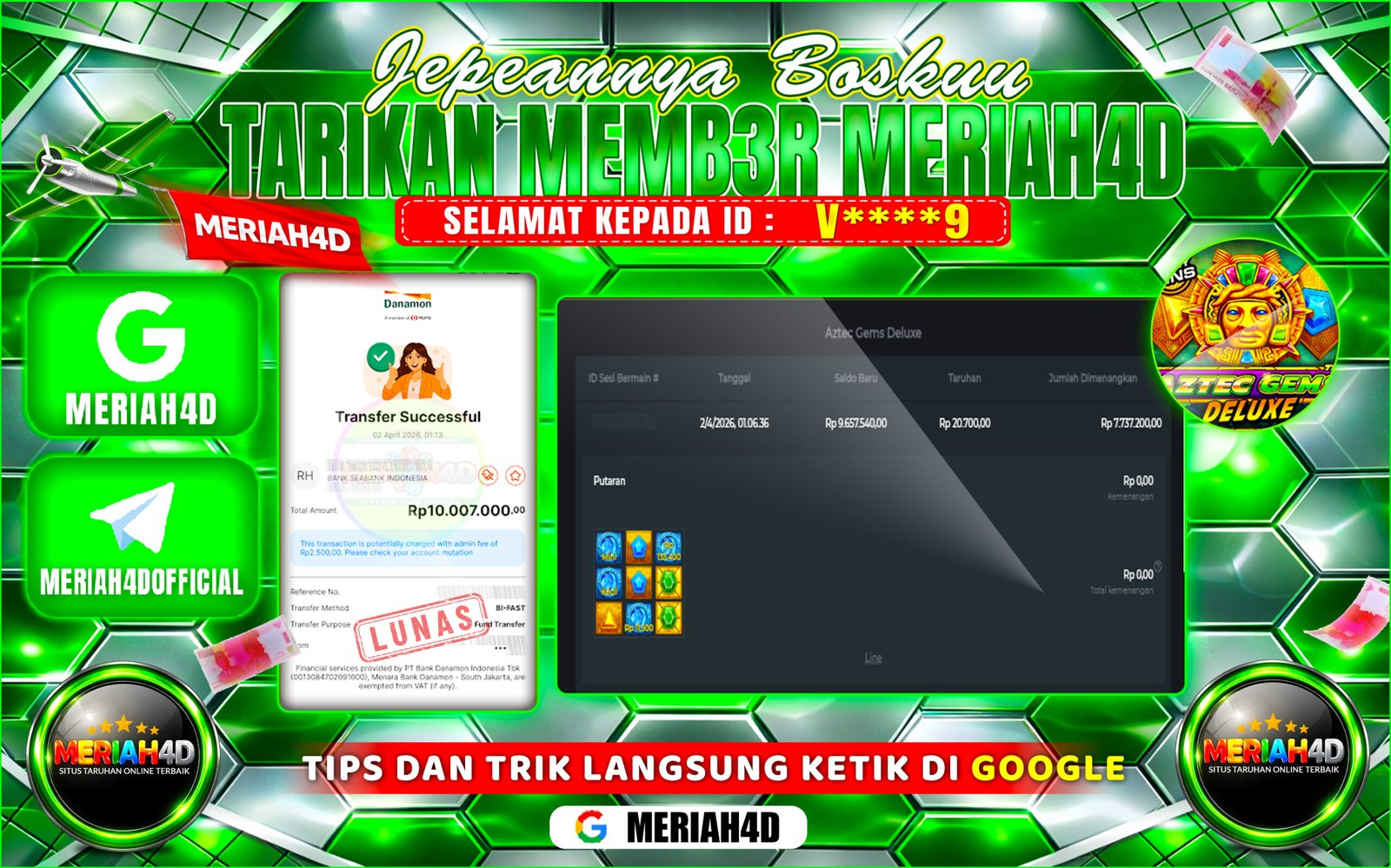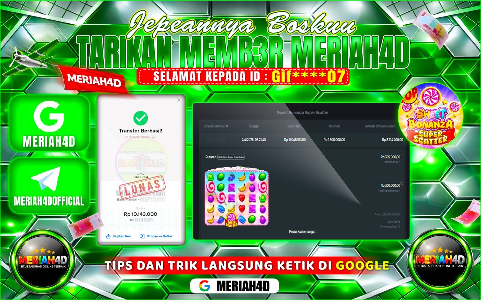 Selamat Kepada ID : RA*****15 Atas Withdraw Rp. 10.500.000 Juta Hari ini. Ditunggu Withdraw Selanjutnya dan ajak juga teman temannya…