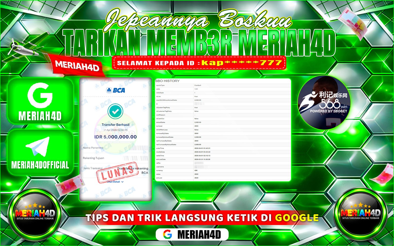 Selamat Kepada ID : DI***SU Atas Withdraw Rp. 6.900.000 Juta Hari ini. Ditunggu Withdraw Selanjutnya dan ajak juga teman temannya…