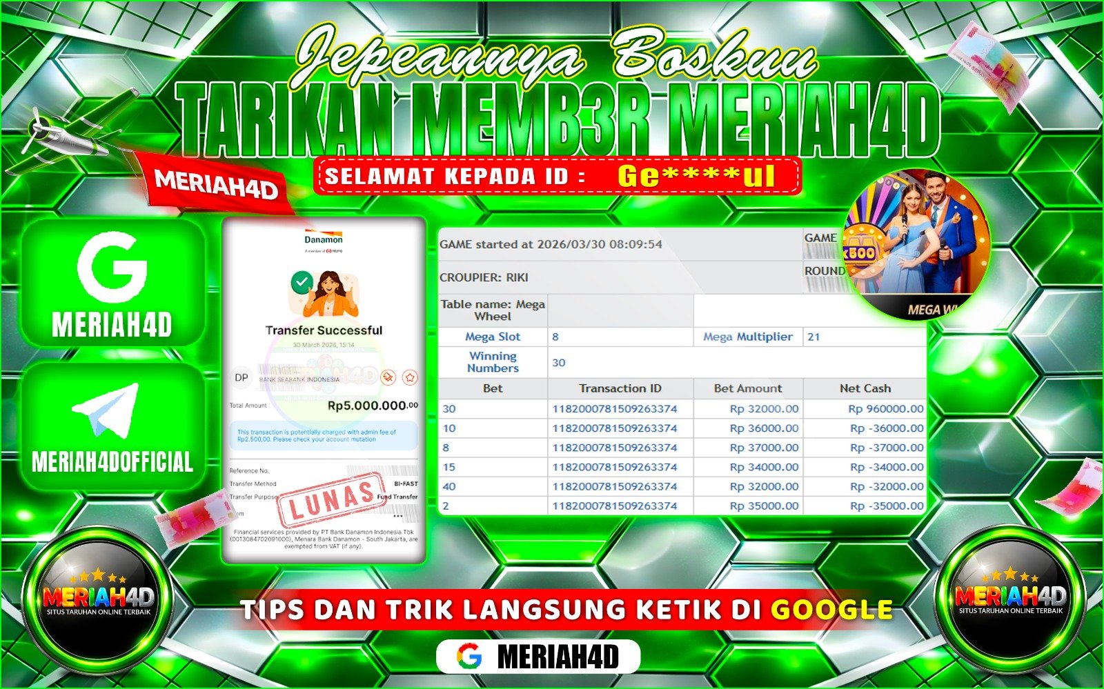 Selamat Kepada ID : S****M Atas Withdraw Rp. 31.000.000 Juta Hari ini. Ditunggu Withdraw Selanjutnya dan ajak juga teman temannya…