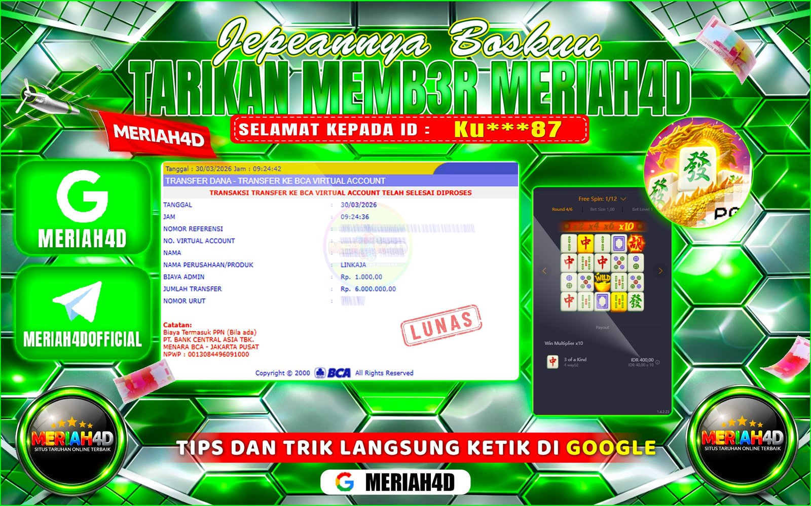 Selamat Kepada ID : B*******A Atas Withdraw Rp. 26.403.000 Juta Hari ini. Ditunggu Withdraw Selanjutnya dan ajak juga teman temannya…