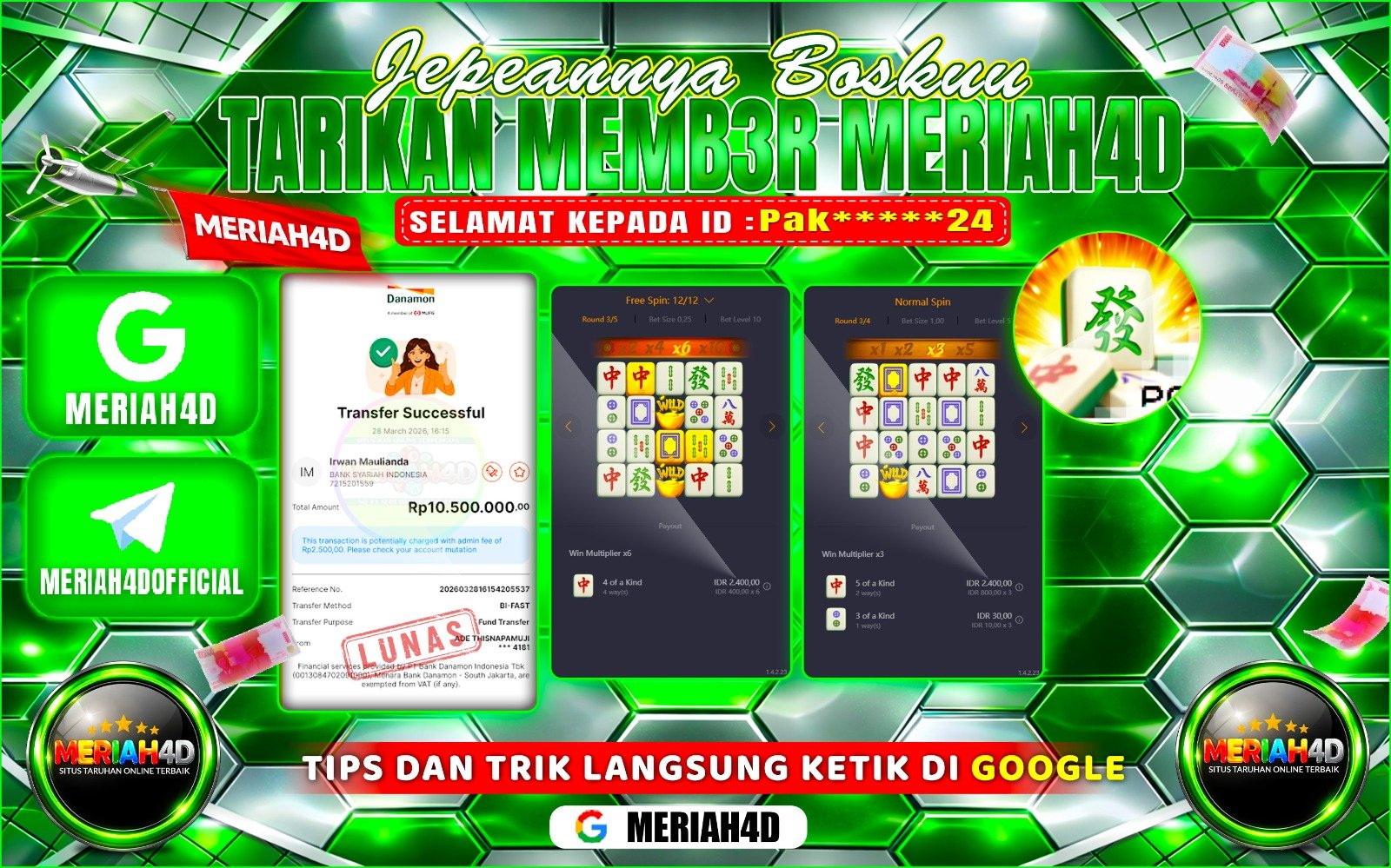 Selamat Kepada ID : H********10 Atas Withdraw Rp. 10.000.000 Juta Hari ini. Ditunggu Withdraw Selanjutnya dan ajak juga teman temannya…