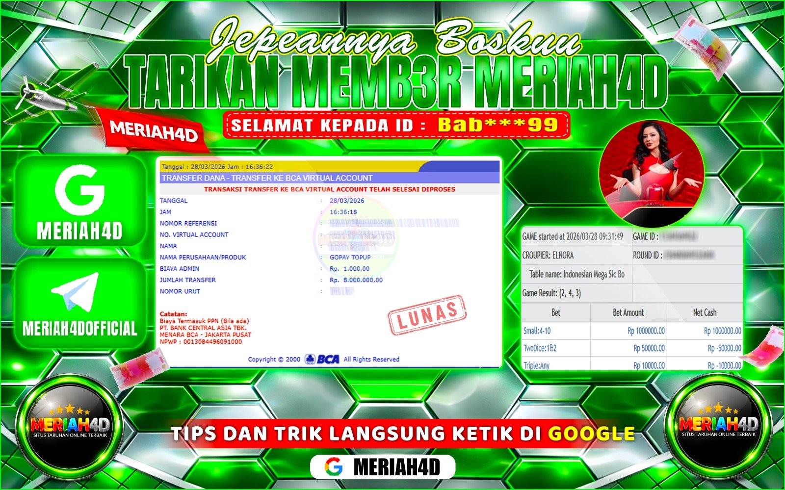 Selamat Kepada ID : T********N Atas Withdraw Rp. 20.000.000 Juta Hari ini. Ditunggu Withdraw Selanjutnya dan ajak juga teman temannya…