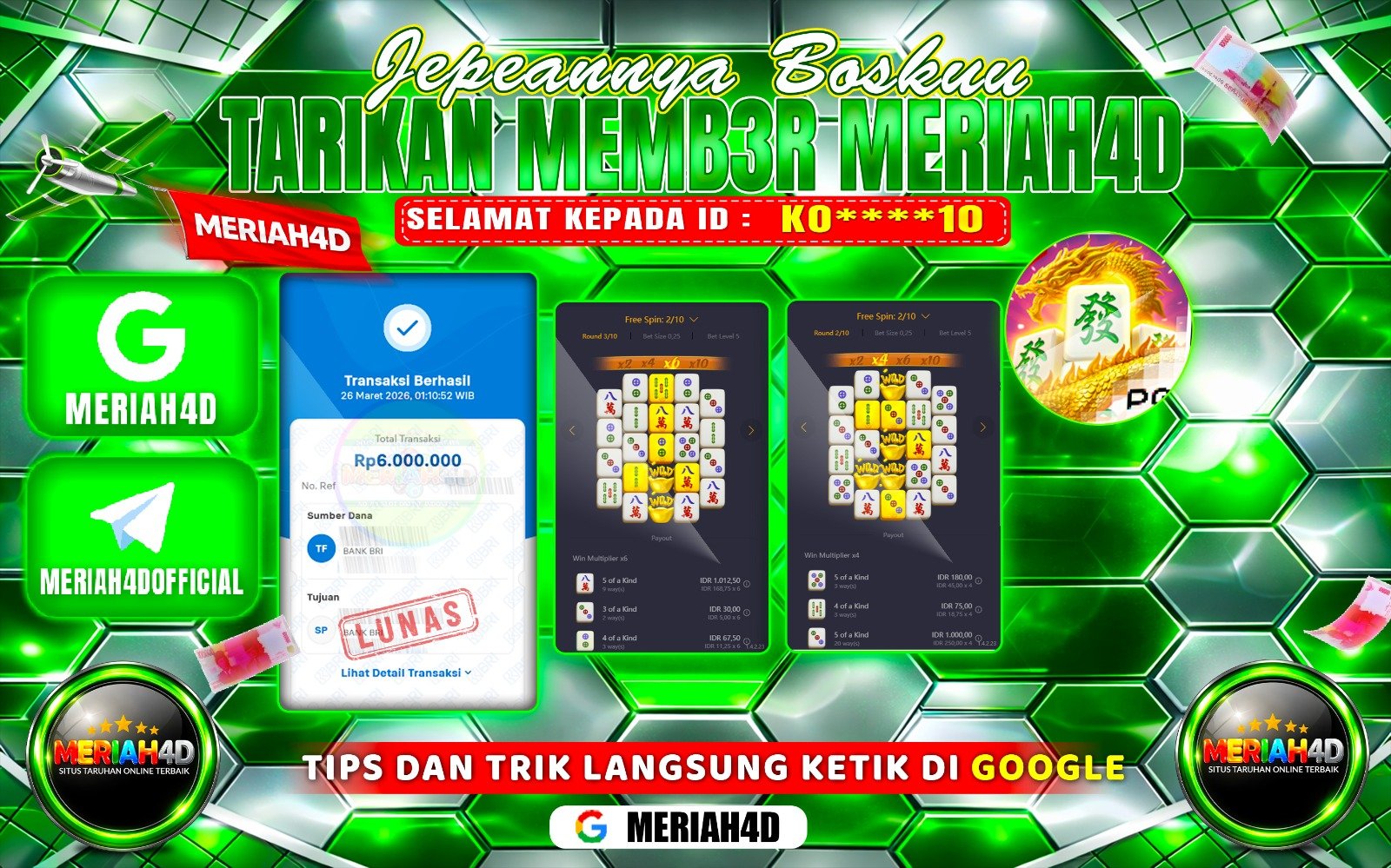 Selamat Kepada ID : PE*******26 Atas Withdraw Rp. 9,000,000 Juta Hari ini. Ditunggu Withdraw Selanjutnya dan ajak juga teman temannya…