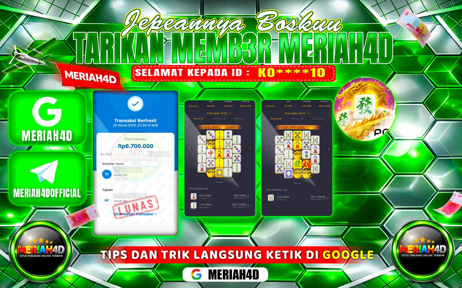 Selamat Kepada ID : K*****1 Atas Withdraw Rp. 10,000,000 Juta Hari ini. Ditunggu Withdraw Selanjutnya dan ajak juga teman temannya…
