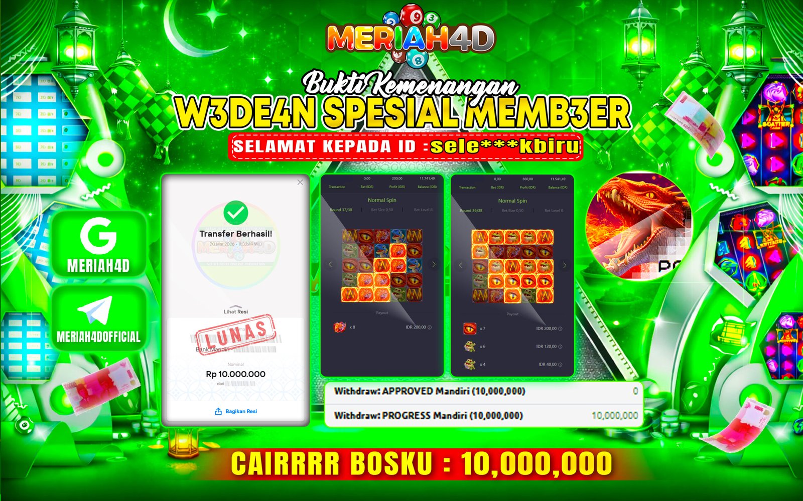 Selamat Kepada ID : E*****7 Atas Withdraw Rp. 10.000.000 Juta Hari ini. Ditunggu Withdraw Selanjutnya dan ajak juga teman temannya…