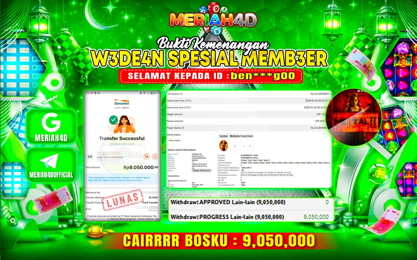 Selamat Kepada ID : SU***31 Atas Withdraw Rp. 20.000.000 Juta Hari ini. Ditunggu Withdraw Selanjutnya dan ajak juga teman temannya…