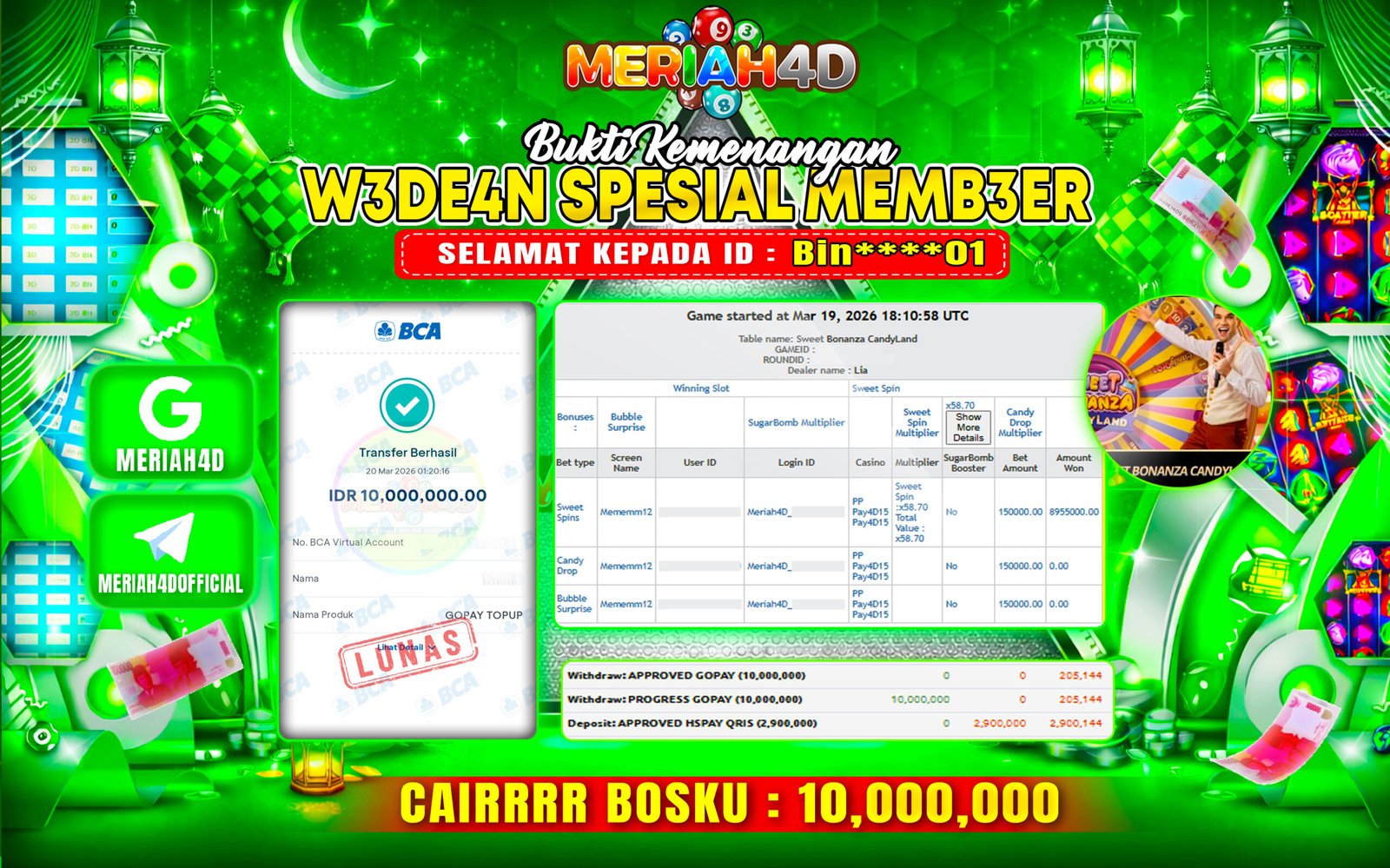 Selamat Kepada ID : IW****33 Atas Withdraw Rp. 10.000.000 Juta Hari ini. Ditunggu Withdraw Selanjutnya dan ajak juga teman temannya…
