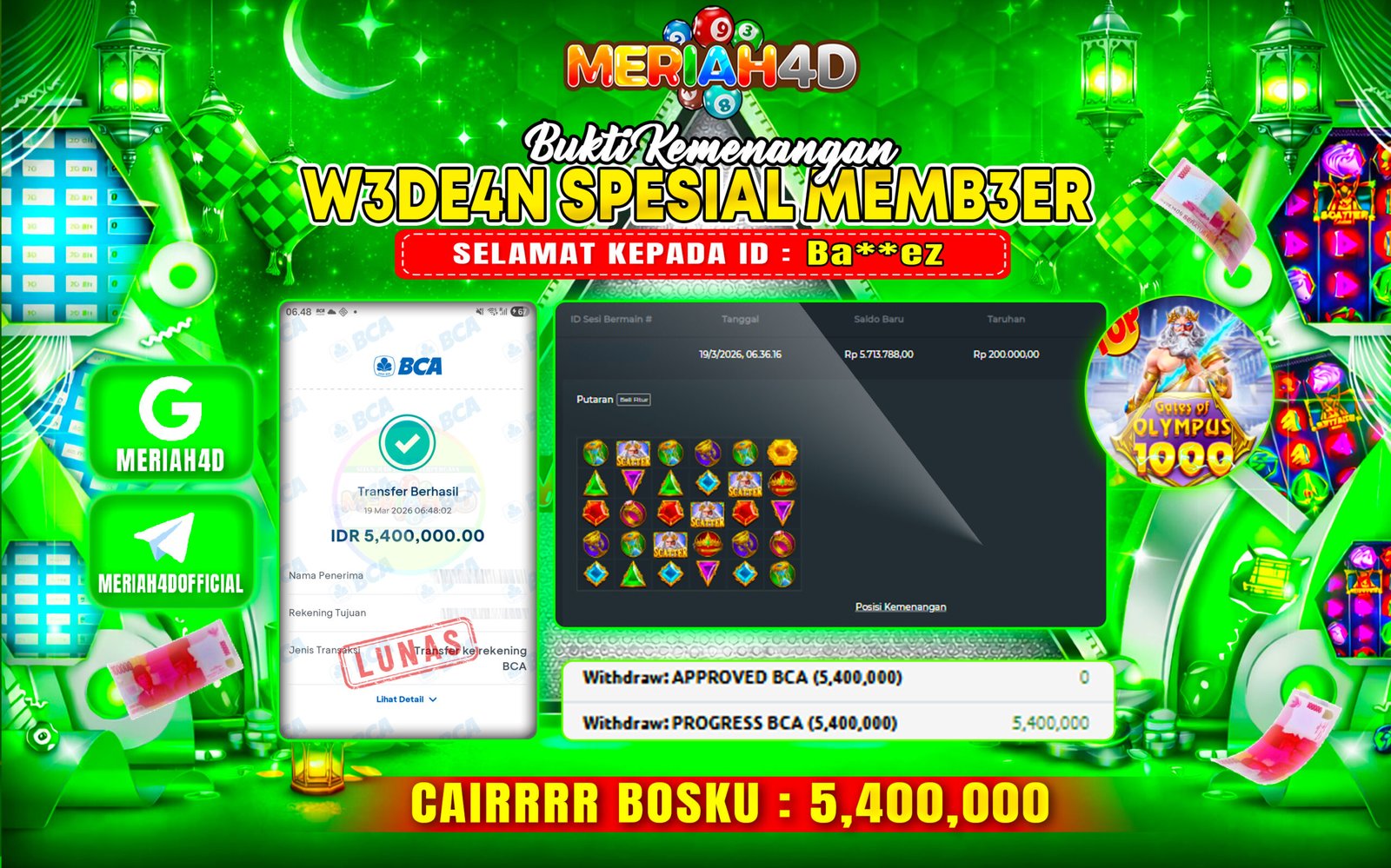 Selamat Kepada ID : R******1 Atas Withdraw Rp. 38.300.000 Juta Hari ini. Ditunggu Withdraw Selanjutnya dan ajak juga teman temannya…