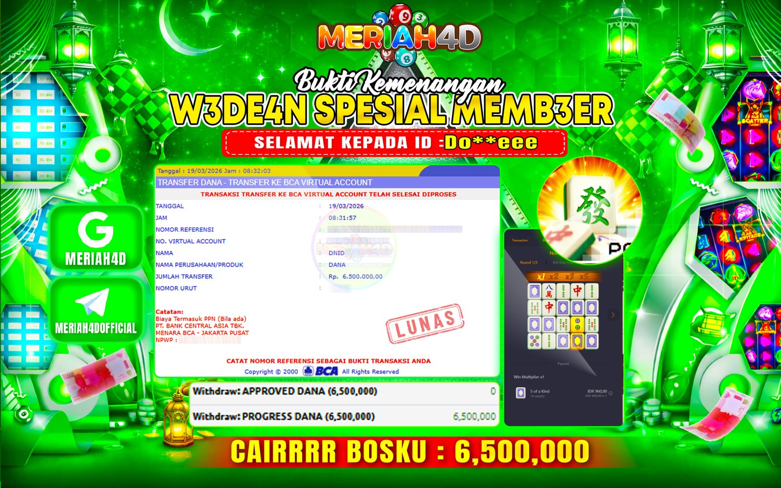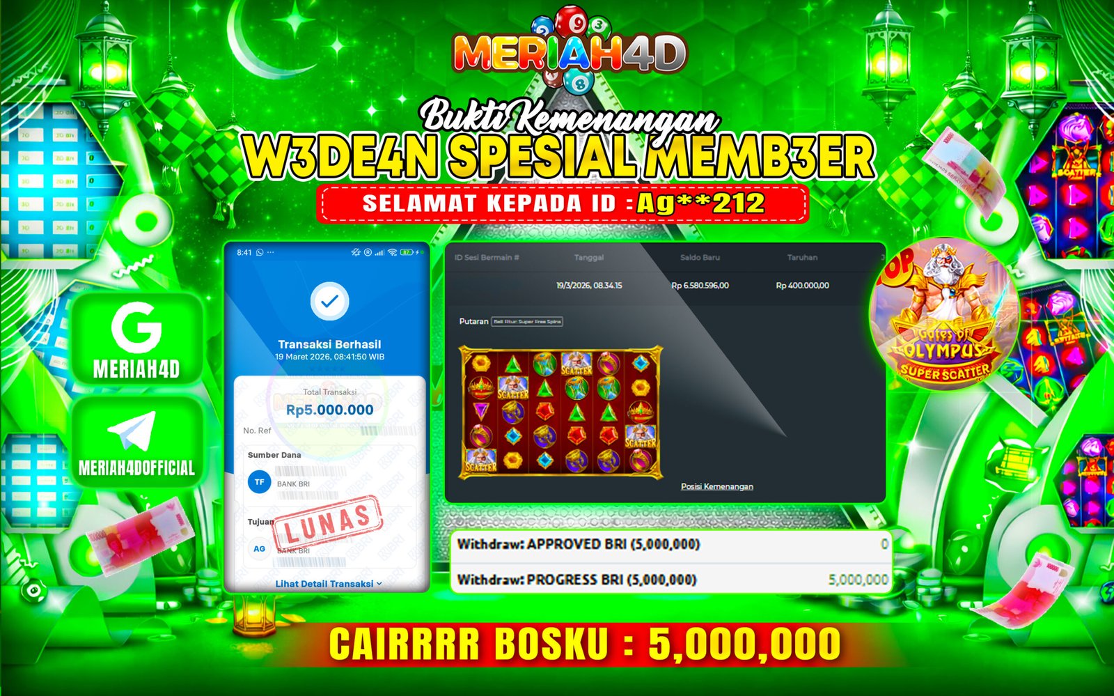 Selamat Kepada ID : S******T Atas Withdraw Rp. 10.000.000 Juta Hari ini. Ditunggu Withdraw Selanjutnya dan ajak juga teman temannya…