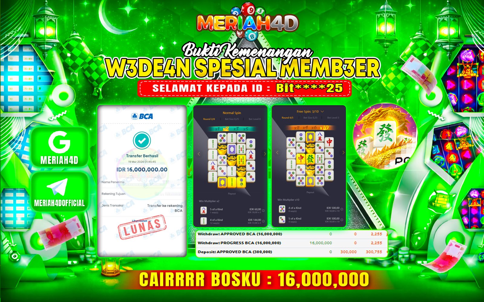 Selamat Kepada ID : MI******G1 Atas Withdraw Rp. 13.214.000 Juta Hari ini. Ditunggu Withdraw Selanjutnya dan ajak juga teman temannya…