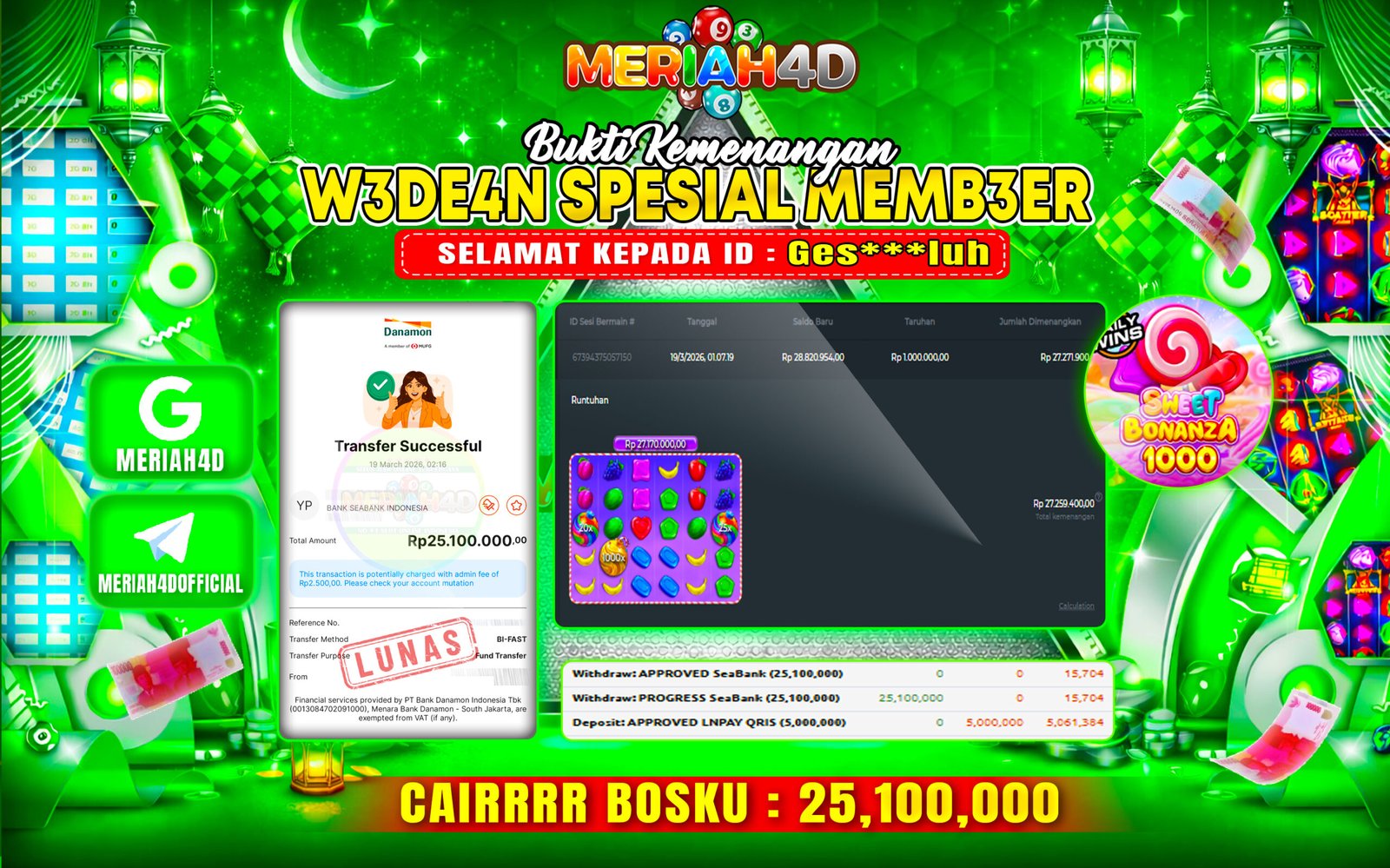 Selamat Kepada ID : R******D Atas Withdraw Rp. 115.225.000 Juta Hari ini. Ditunggu Withdraw Selanjutnya dan ajak juga teman temannya…