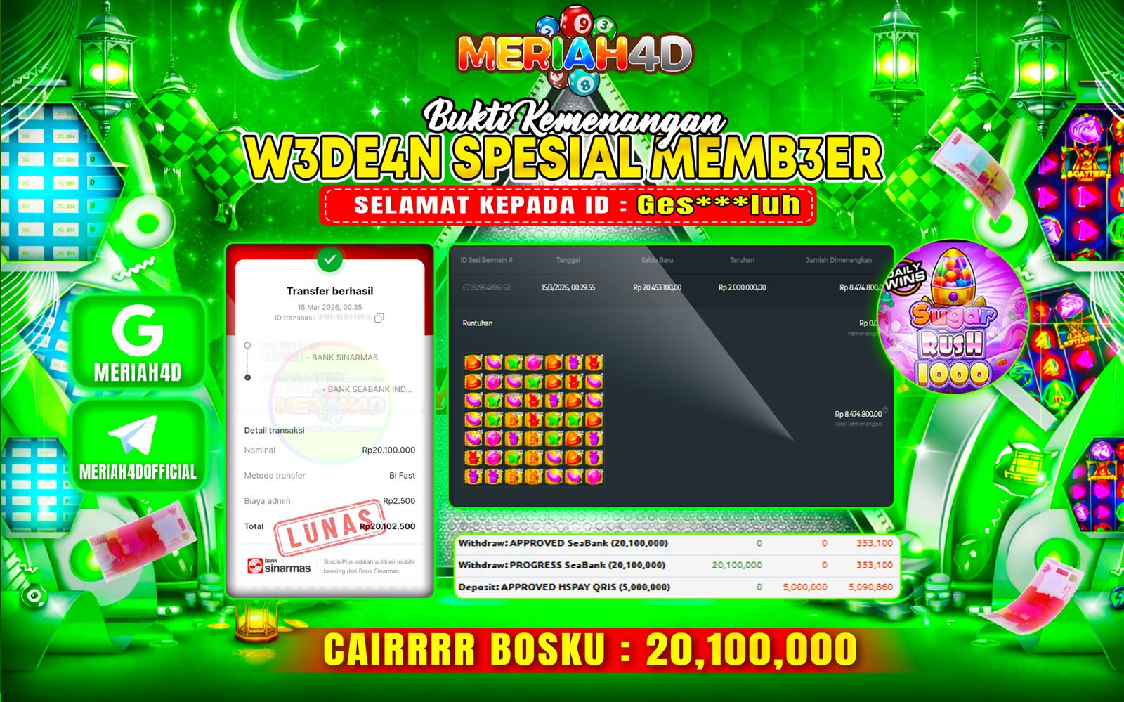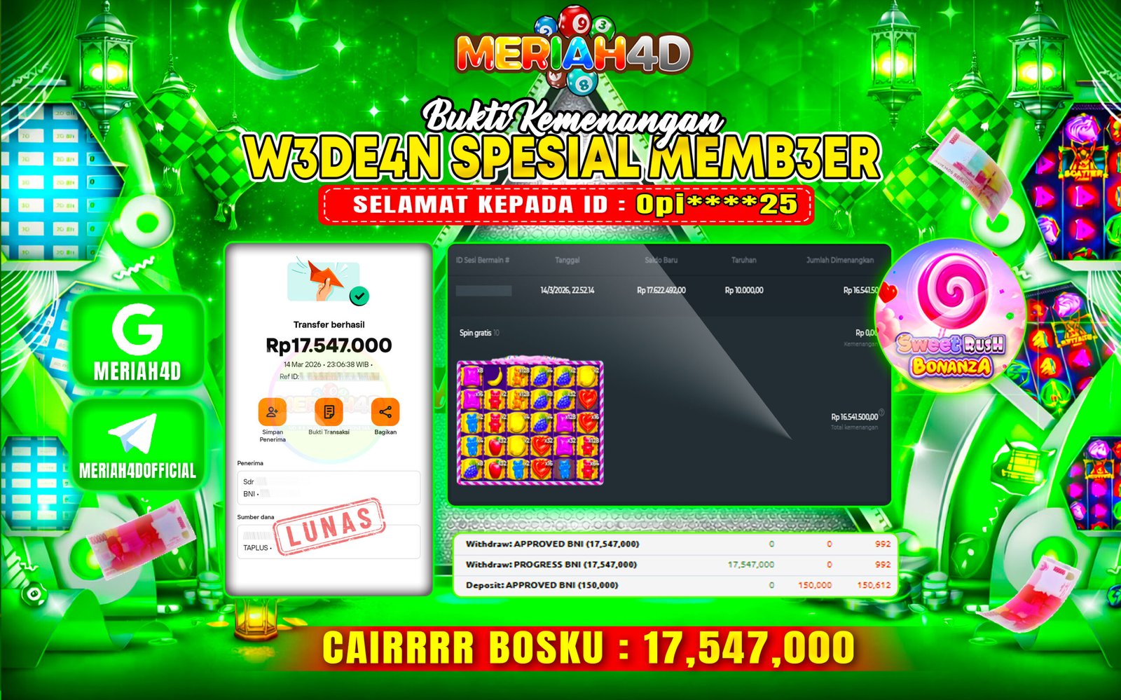 Selamat Kepada ID : 0*******12 Atas Withdraw Rp. 30.000.000 Juta Hari ini. Ditunggu Withdraw Selanjutnya dan ajak juga teman temannya…