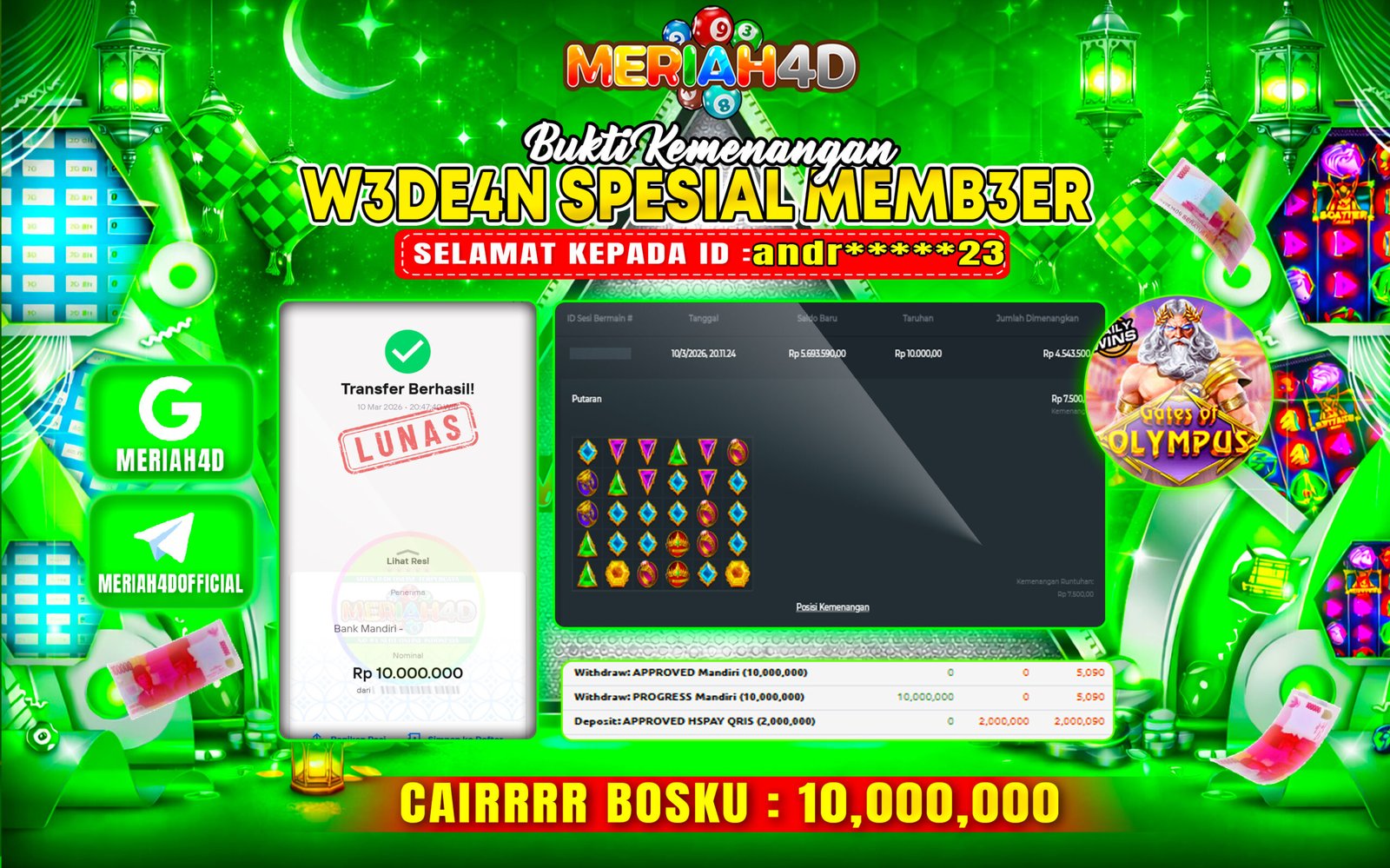 Selamat Kepada Id : A******N Atas Withdraw Rp. 76.000.000 Juta Hari ini. Ditunggu Withdraw Selanjutnya dan ajak juga teman temannya…