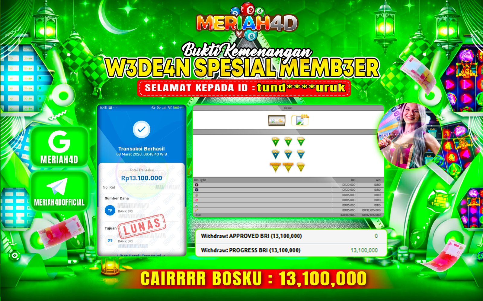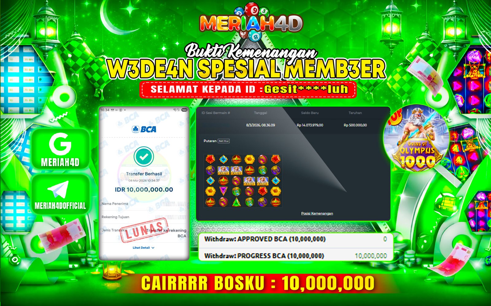Selamat Kepada Id : NU******19 Atas Withdraw Rp. 108.500.000 Juta Hari ini. Ditunggu Withdraw Selanjutnya dan ajak juga teman temannya…
