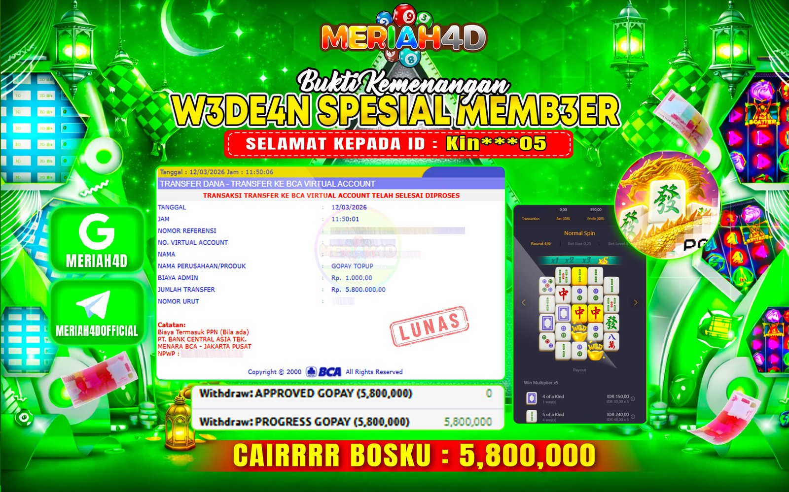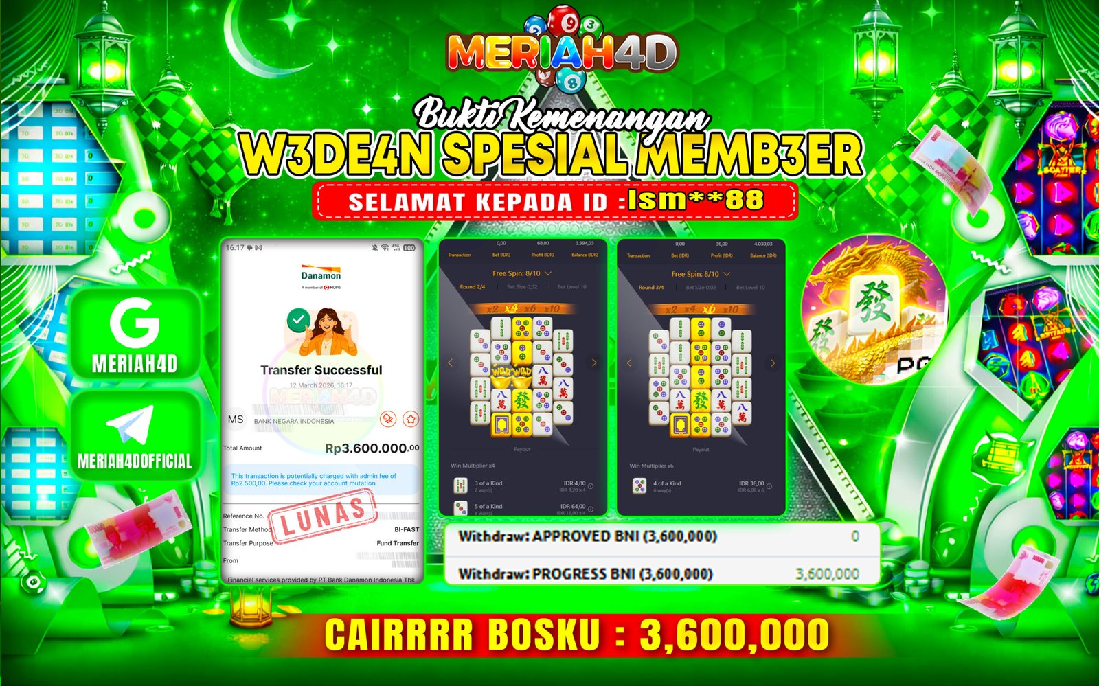 Selamat Kepada Id : NU******19 Atas Withdraw Rp. 108.500.000 Juta Hari ini. Ditunggu Withdraw Selanjutnya dan ajak juga teman temannya…