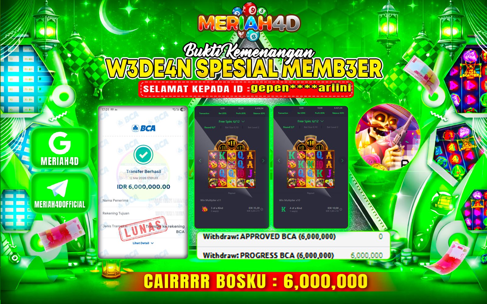 Selamat Kepada Id : SU******31 Atas Withdraw Rp. 6.000.000 Juta Hari ini. Ditunggu Withdraw Selanjutnya dan ajak juga teman temannya…