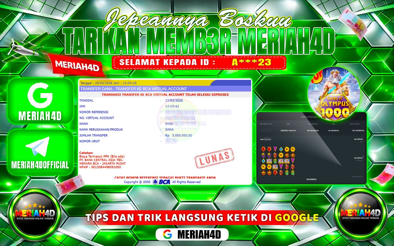 Selamat Kepada Id : NU******19 Atas Withdraw Rp. 108.500.000 Juta Hari ini. Ditunggu Withdraw Selanjutnya dan ajak juga teman temannya…