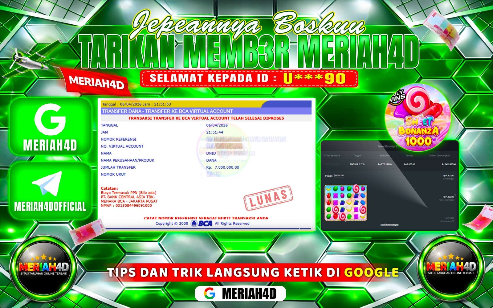 BUKTI KEMENANGAN MERIAH4D GAME SLOT (SWEET BONANZA 1000)