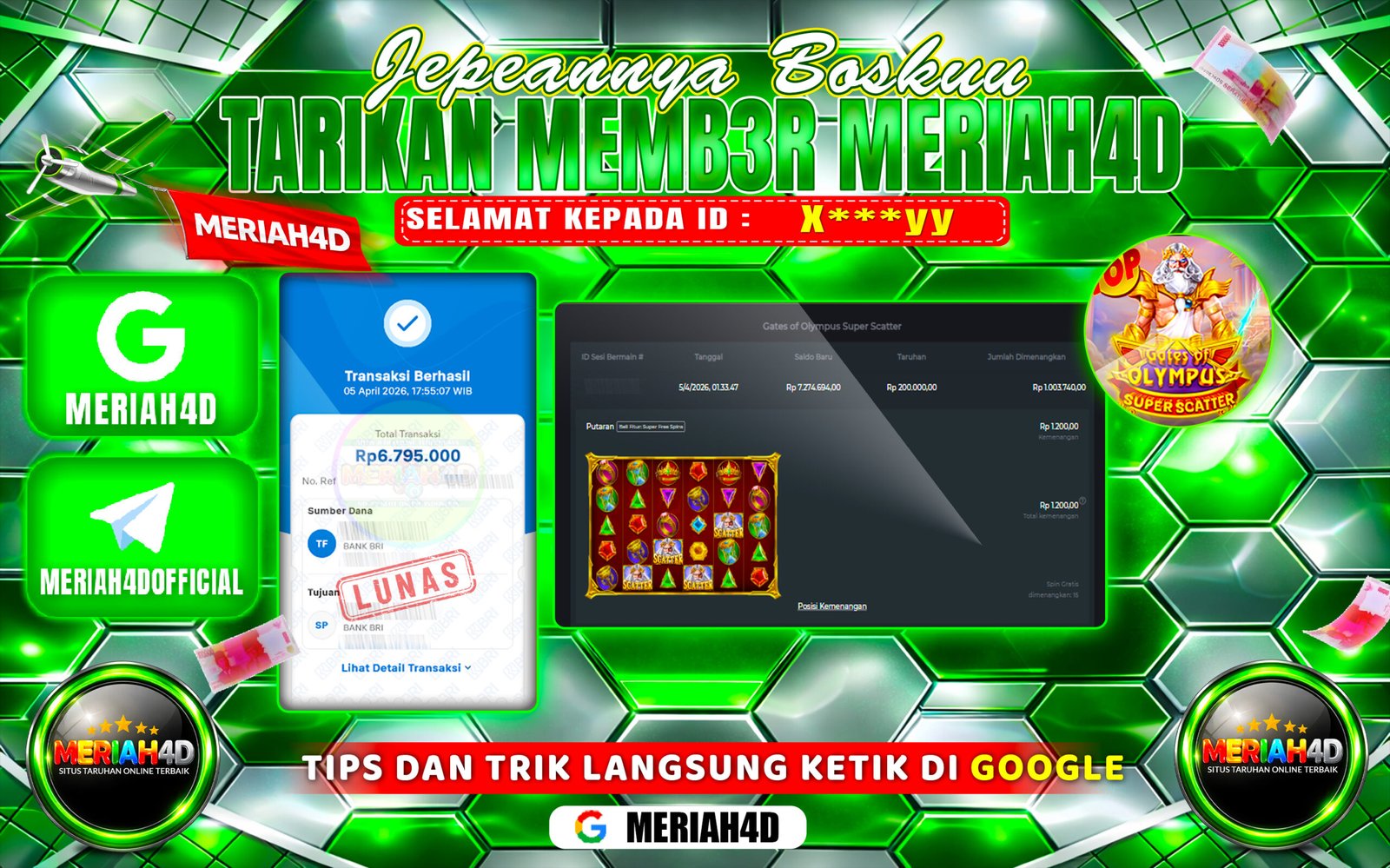 BUKTI KEMENANGAN MERIAH4D GAME SLOT (GATES OF OLYMPUS SUPER SCATTER)